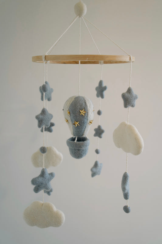 Hot Air Balloon Mobile – Baby Blue & Gold